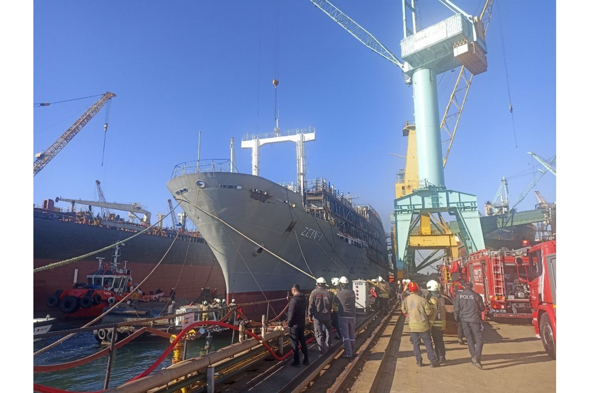 İstanbulun Tuzla gəmiqayırma zavodları bölgəsində lövbər salmış və heyvan yemi yüklü "Zein 1" adlı gəmidə yanğın baş verib.