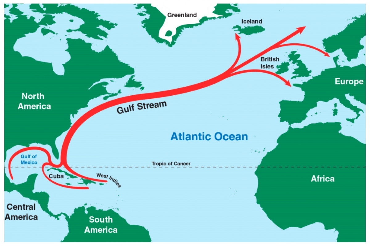 Atlantik Meridional Dövriyyəsi (AMC) tropiklərdən şimala, Arktikaya doğru isti su daşıyan bir cərəyandır və bu isti su axını Avropada mülayim qış iqliminin qorunmasına kömək edir.