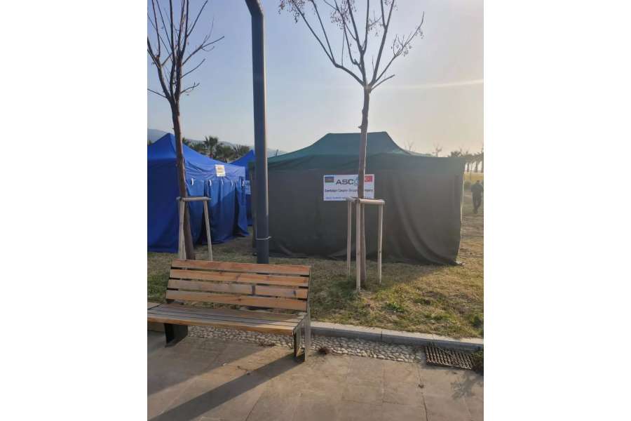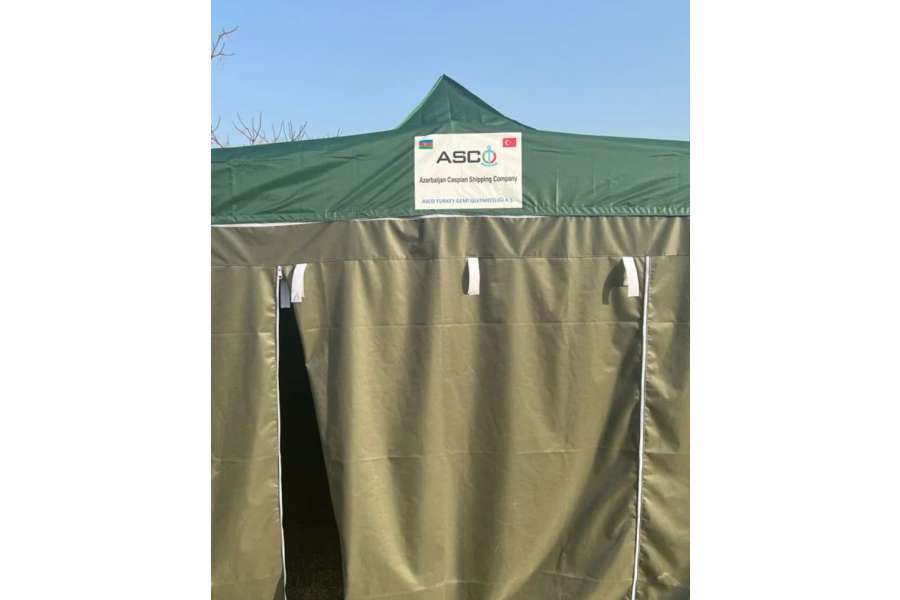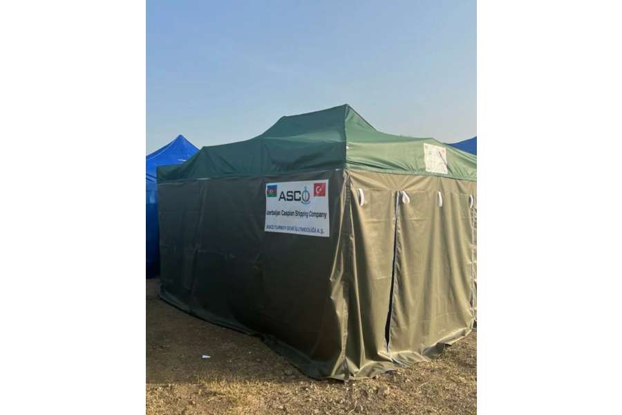 Prezident İlham Əliyevin tapşırğına uyğun olaraq, “Azərbaycan Xəzər Dəniz Gəmiçiliyi” QSC (ASCO) adından qardaş ölkə Türkiyədə baş vermiş və çoxsaylı insan tələfatına səbəb olmuş zəlzələdən zərərçəkənlərə dəstək üçün göndərilən çadırlar artıq quraşdırılıb. 100 ədəd çadır Hatay şəhərinin Arsuz bölgəsində "Expo 21" sərgi mərkəzinin önündə yerləşdirilib.