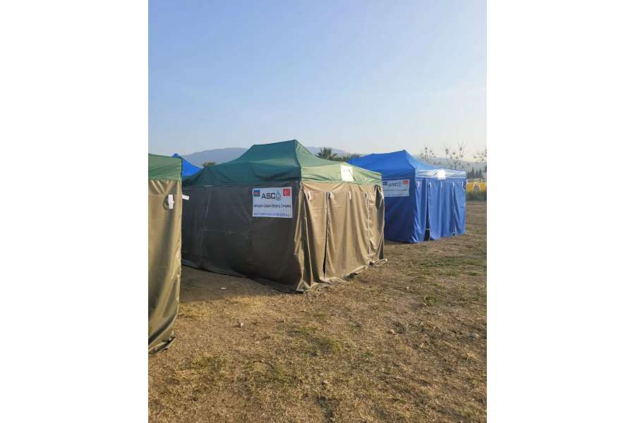 ASCO-nun zəlzələ bölgəsinə göndərdiyi çadırlar quraşdırılıb
