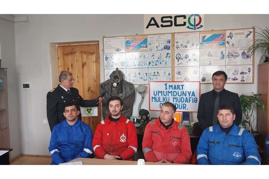 “Azərbaycan Xəzər Dəniz Gəmiçiliyi” QSC-nin (ASCO) “Bibiheybət” Gəmi Təmiri Zavodunda (BGTZ) 1 mart Ümumdünya Mülki Müdafiə Günü ilə əlaqədar tədbir keçirilib.