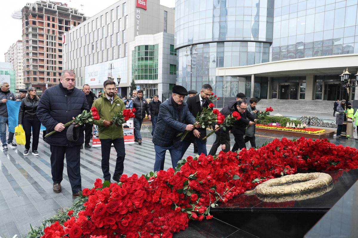 Abidənin önünə güllər düzülüb, şəhidlərin əziz xatirəsi ehtiramla yad olunub.
