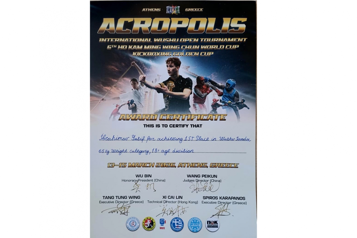 Azərbaycan Dövlət Dəniz Akademiyasının (ADDA) Gəmi mexanikası və elektromexanikası fakültəsinin III kurs tələbəsi Yusif İbrahimov Afinada uşu sanda üzrə keçirilən "International Acropolis Wushu Tournament" beynəlxalq turnirində çempionluq zirvəsinə yüksəlib.