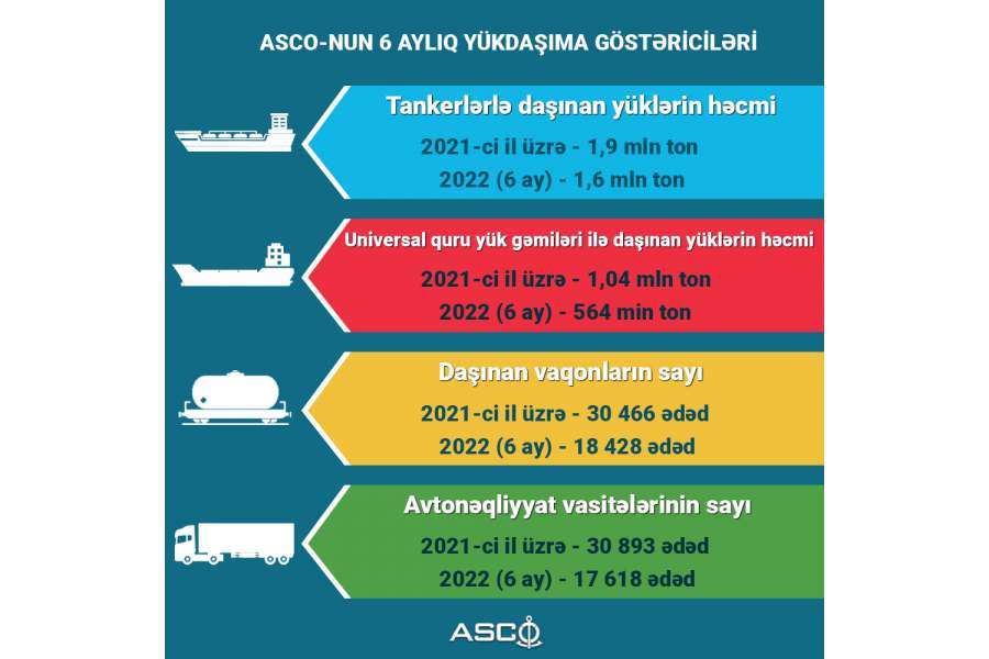 Azərbaycan Xəzər Dəniz Gəmiçiliyi QSC (ASCO) 2022-ci ilin ilk 6 ayı üçün yükdaşıma göstəricilərini açıqlayıb.