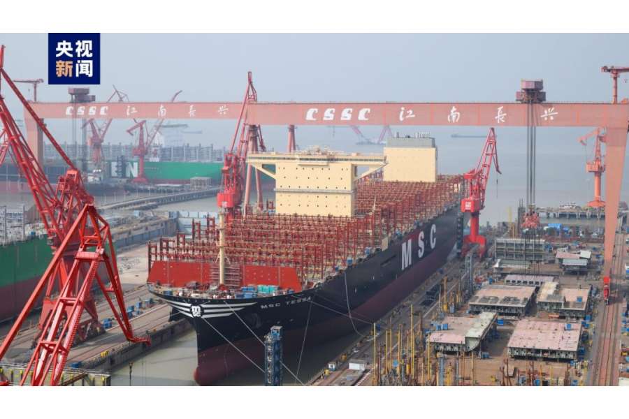 Şanxayda dünyanın ən böyük konteyner gəmisi dokdan çıxarılıb.