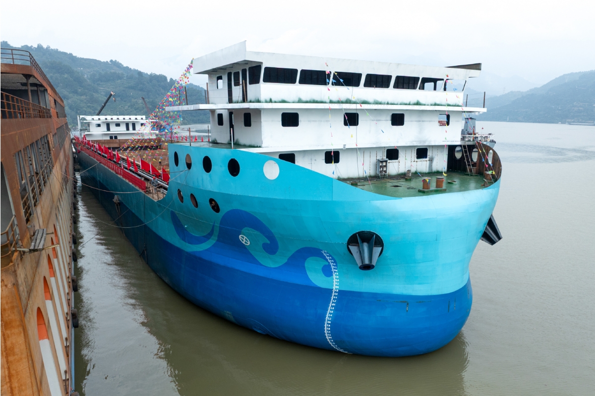 Çinin Hubei əyalətinin Yichang şəhərində inşa olunan tam elektrikli “Gezhouba” adlı quru yük gəmisi rəsmi mərasimlə suya endirilib.