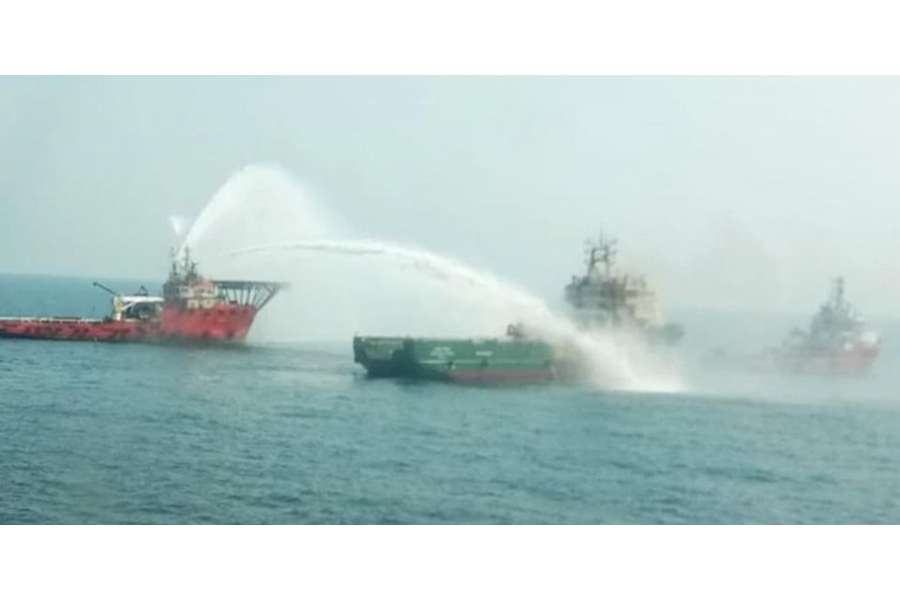 Ərəbistan dənizində üzən “Greatship Rohini” adlı ofşor gəmisində yanğın baş verib.