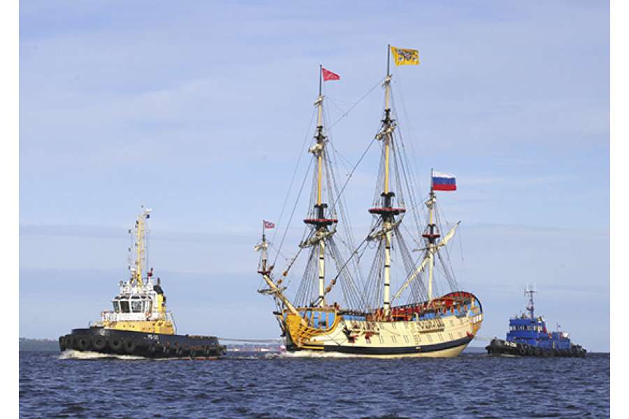 Böyük Pyotr dövründəki "Poltava" yelkənli gəmisinin surəti isə Sankt-Peterburqdakı eyniadlı gəmiqayırma zavodunda inşa edilmişdir ki, bu da Rusiya Federasiyasında tarixi və müasir yelkənli donanma ilə əlaqəli yeganə müəssisədir. Gəminin tikintisinə 2013-cü ildə başlanmışdı.