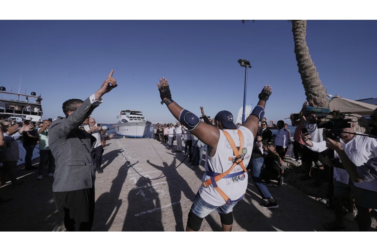 Qəzetin yazdığına görə, idmançı Misirin Hurqad şəhərindəki çimərlikdə gəmini müvəffəqiyyətlə yedəkləyib.