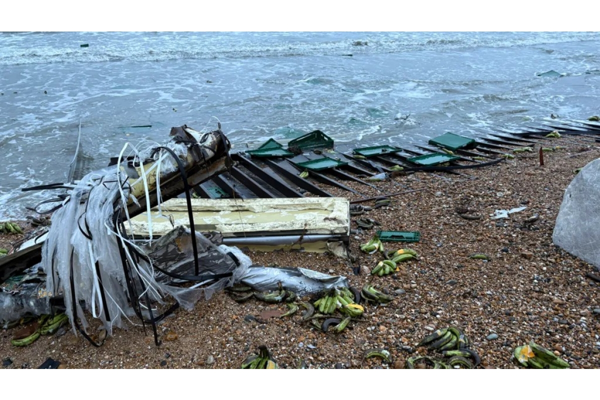 İngiltərənin cənub sahilində yerləşən Qərbi Sasseks çimərliklərində istirahət edənlər qeyri-adi mənzərə ilə qarşılaşıblar. Yük gəmisindən düşən konteynerlərdən dənizə yayılan banan dəstələri sahilə çıxıb.