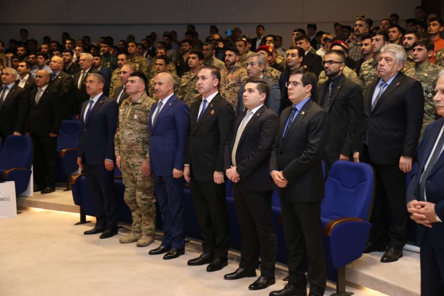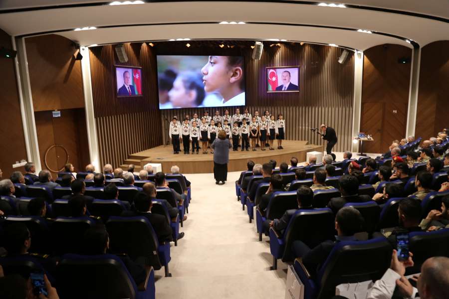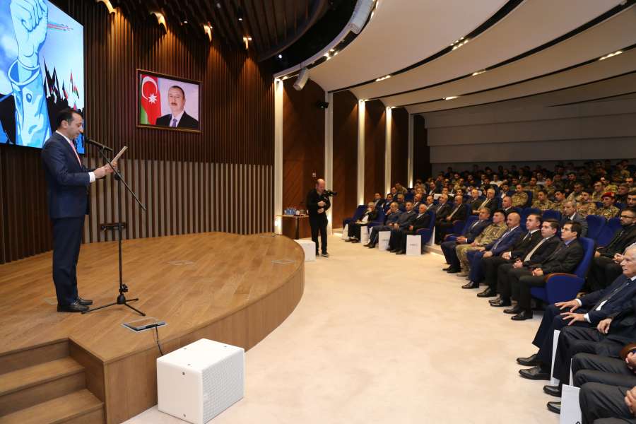 Zəfər Günü tədbiri Dövlət Himninin səsləndirilməsi və Vətən müharibəsi şəhidlərinin xatirəsinin bir dəqiqəlik sükutla yad olunması ilə başlayıb.