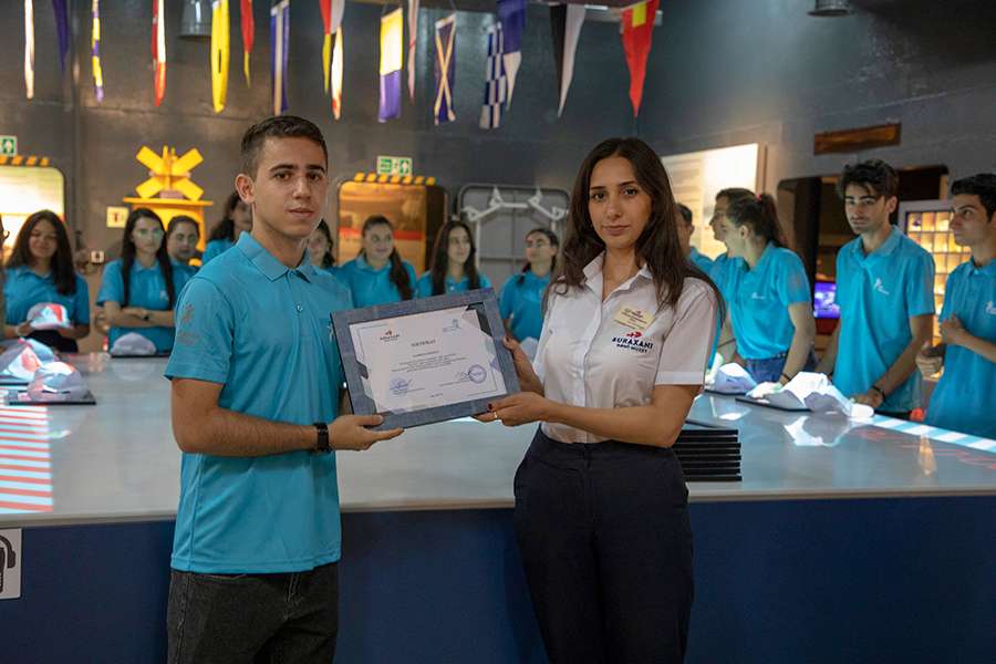 “Azərbaycan Xəzər Dəniz Gəmiçiliyi” QSC-nin (ASCO) “Suraxanı” gəmi-muzeyində “Gənc Könüllülər” İctimai Birliyin könüllüləri sertifikatlarla təltif olunublar.