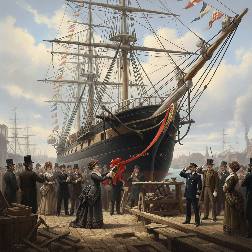 Hazırda vəftiz mərasimi kimi görünən bu adət, həqiqətən də vaxtilə qurbanvermə mərasimi olub: qədim zamanların gəmi ustaları tanrıların rəğbətini qazanmaq üçün həm insan, həm də heyvan qanı tökərdilər. Vikinqlər bu məsələdə xüsusilə amansız olublar; onlar drakkarlarını (vikinq gəmilərini) əsirlərin və qulların bədənləri üzərindən sürüyərək suya salırdılar ki, gəmi ilk döyüşdən əvvəl qanın dadını bilsin.